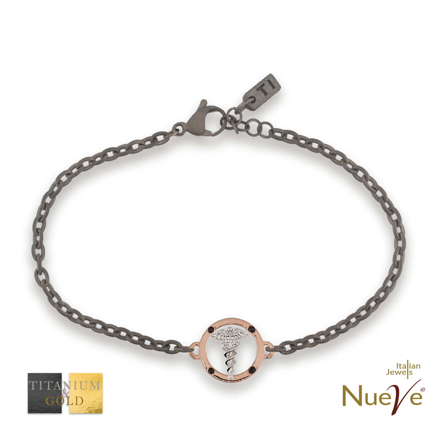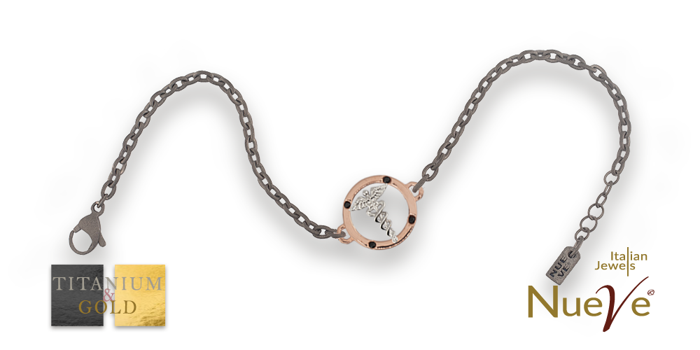Bracciale Titanio e Oro 9 kt con diamanti neri * Laurea Farmacia "Il Caduceo" *