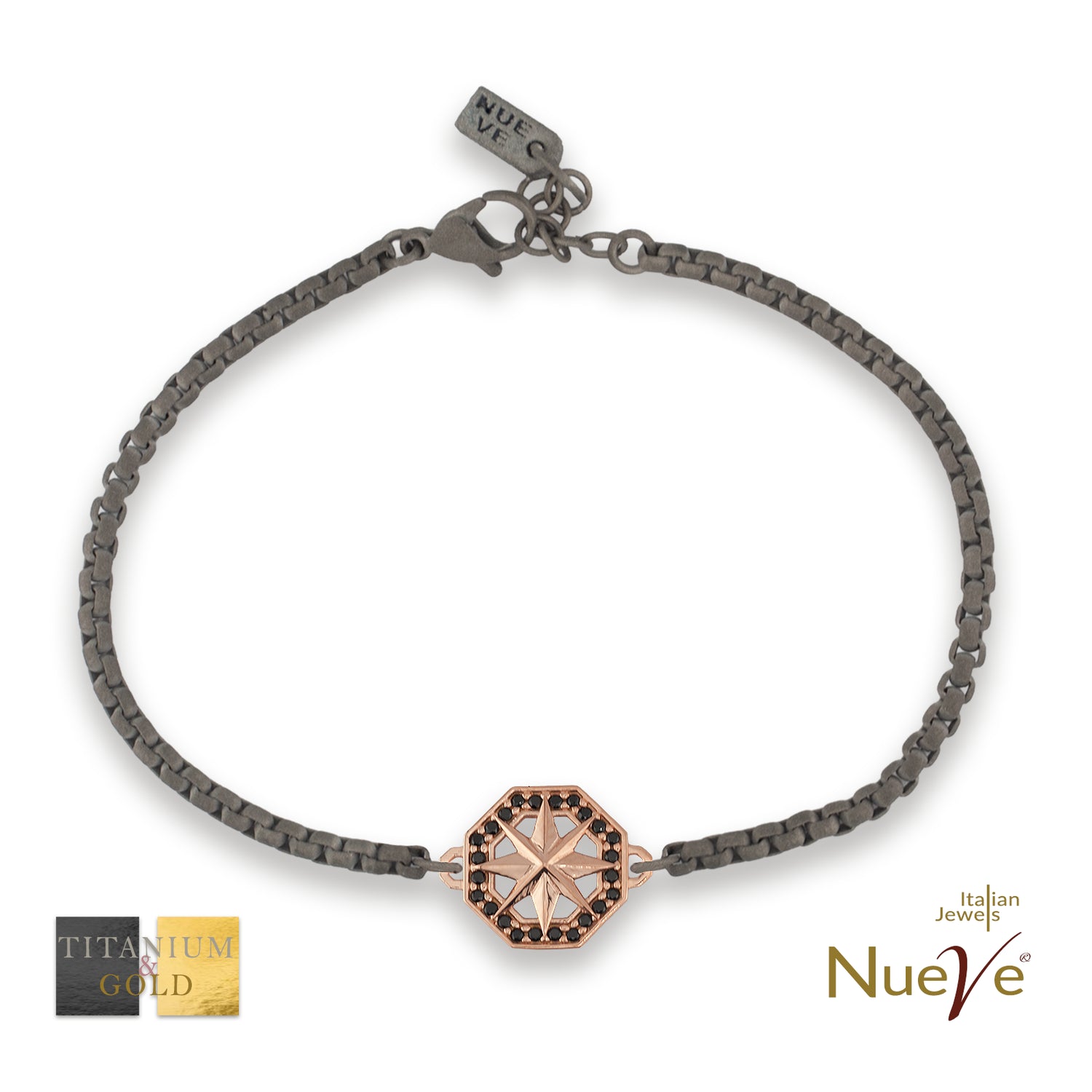 Bracciale Titanio e Oro 9 kt con diamanti neri * La rosa dei venti *